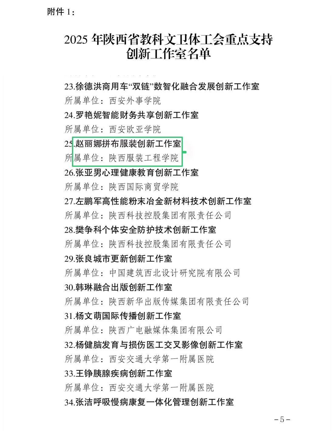陕服工会网讯(李文斌)近日,陕西省教科文卫体工会委员会发布《关于发挥好2025年陕西省教科文卫体工会重点支持创新工作室作用的通知》,我校服装学院“赵丽娜拼布服装创新工作室”在重点支持之列。这不仅是对工作室团队深耕传统工艺与现代设计融合的肯定,也是我校在非遗传承、创新型人才培养与产学研结合方面取得的又一重要成果。