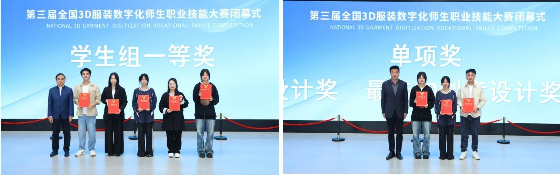 颁奖典礼中,服装设计与工程2201班学生侯嘉汇不仅摘得学生工艺组全国一等奖,又拿下“最佳3D建模设计奖”,成为双料赢家;服装工程系梁盈春老师则在理论考试中得到本次唯一满分的佳绩,获特别表扬。学生工艺组2201班杨佳瑶、2301班徐夏雨获全国三等奖,2301班左敏熙获全国优秀奖;教师组梁盈春老师获创意组全国三等奖,陈宇佳老师获创意组全国优秀奖,徐云峰、张俊花老师获工艺组全国三等奖。