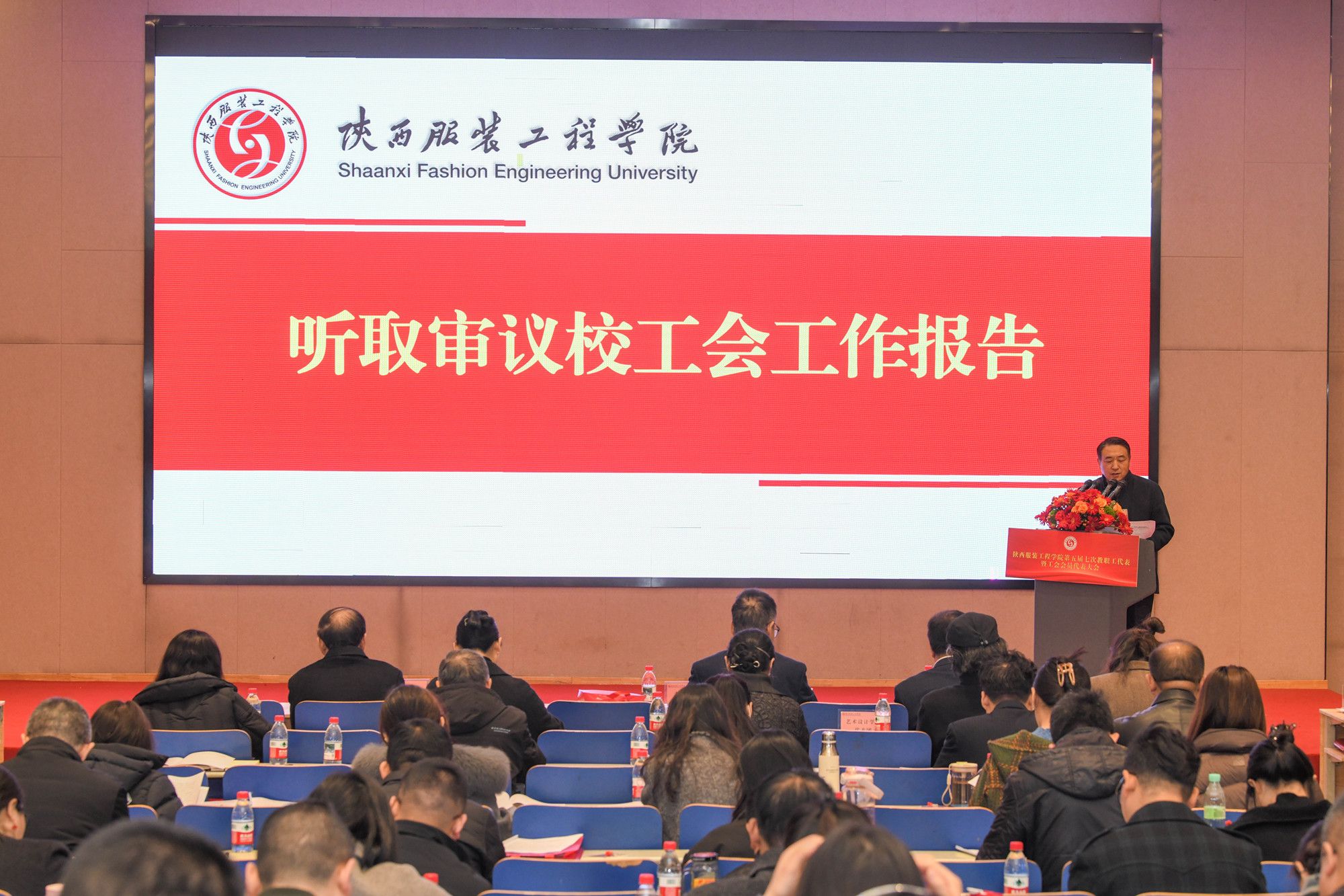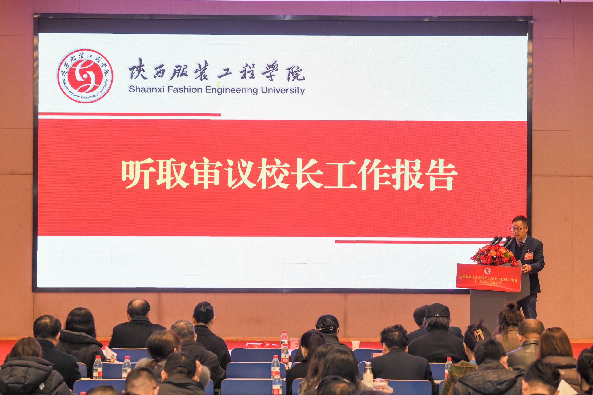 陕服工会网讯(李文斌)3月10日,我校第五届第七次教职工代表大会暨工会会员代表大会(以下简称“双代会”)在E1-4报告厅召开。大会以“改革攻坚提质效,内涵发展谱新篇,为建设特色鲜明的一流应用型大学而努力奋斗”为主题,审议通过了校长工作报告、工会工作报告及提案征集处理情况报告,并原则通过了《陕西服装工程学院“十五五”发展规划(草案)》及《陕西服装工程学院自有专任教师第一轮聘期考核和第二轮岗位聘任实施办法》。大会127名正式代表、26名特邀代表齐聚一堂,共商学校发展大计。代表们围绕学校改革发展积极建言献策,提出了诸多富有建设性的意见建议,充分彰显了民主团结、求真务实的大会精神。